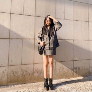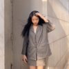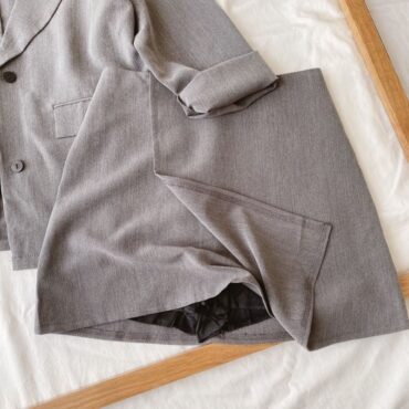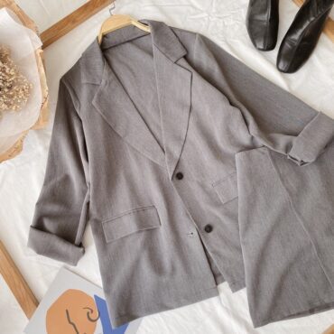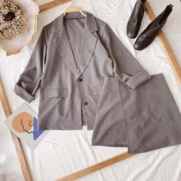 Set Vest Kẻ Xám Phối Chân Váy Chữ A Công Sở